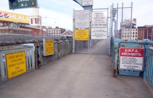 Ed Kasuba, director of corporate communications for the DRPA, confirmed the interstate agency plans to replace the stairs with a ramp. He referred questions about the “At your own risk” signs to the DRPA’s legal department, which could not be reached for comment this week, possibly because it is busy fielding complaints about other matters. The DRPA has been under fire for months for patronage hiring, for providing free train rides and bridge passes to employees, and for spending millions of dollars on projects that have nothing to do with transportation. Maybe some of the money could have been used to improve the walkways.